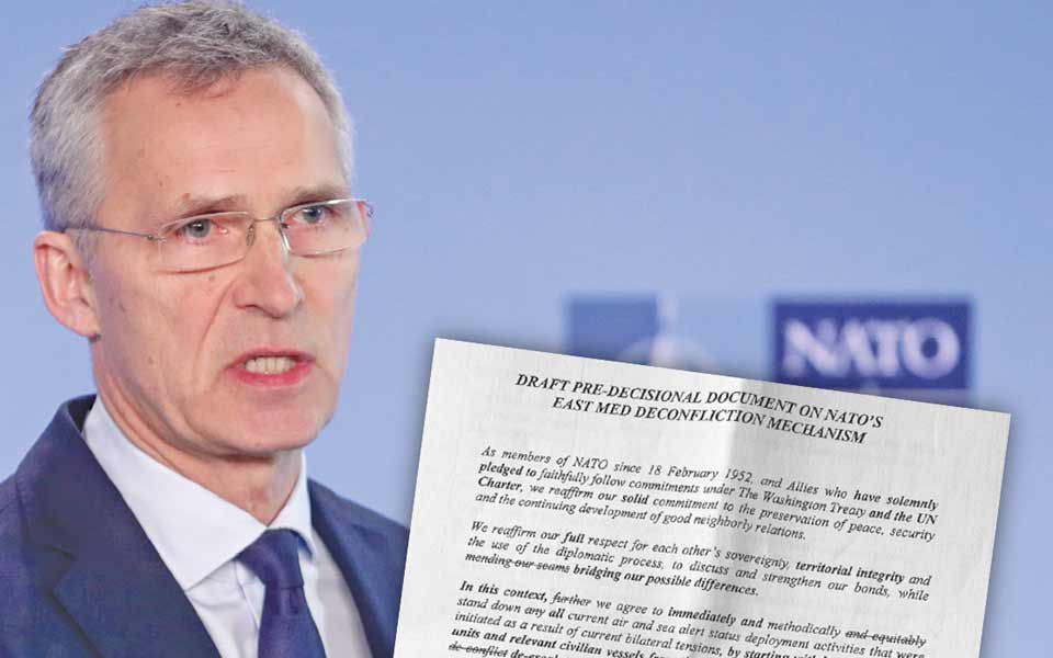 H «Κ» αποκαλύπτει μια από τις πρώτες εκδοχές του άτυπου εγγράφου που είχε συντάξει ο γ.γ. του ΝΑΤΟ Γενς Στόλτενμπεργκ και αποτέλεσε πρόπλασμα για την ανταλλαγή απόψεων Ελλάδας και Τουρκίας, έργο που ανέλαβαν τις προηγούμενες ημέρες οι στρατιωτικοί αντιπρόσωποι των δύο χωρών, ο αντιναύαρχος Ιωάννης Παυλόπουλος και ο ομόλογός του αντιπτέραρχος Ισμαήλ Ουνέρ. Εως σήμερα το έγγραφο έχει υποστεί τουλάχιστον οκτώ μετατροπές, έπειτα από ισάριθμες προτάσεις που κατέθεταν προς τον πρόεδρο ή τον αντιπρόεδρο της Στρατιωτικής Επιτροπής ο εκπρόσωπος της Ελλάδας ή της Τουρκίας, υπό τη μορφή υποβολής σχολίων.