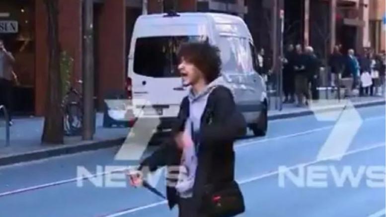 Εικόνες που μεταδόθηκαν από τα αυστραλιανά μέσα ενημέρωσης δείχνουν τον άνδρα να πηδάει πάνω στην οροφή ενός αυτοκινήτου φωνάζοντας “Αλλάχ Άκμπαρ” (Ο Θεός είναι ο Ύψιστος) και να κραδαίνει ένα μαχαίρι φωνάζοντας “Σκοτώστε με!”.