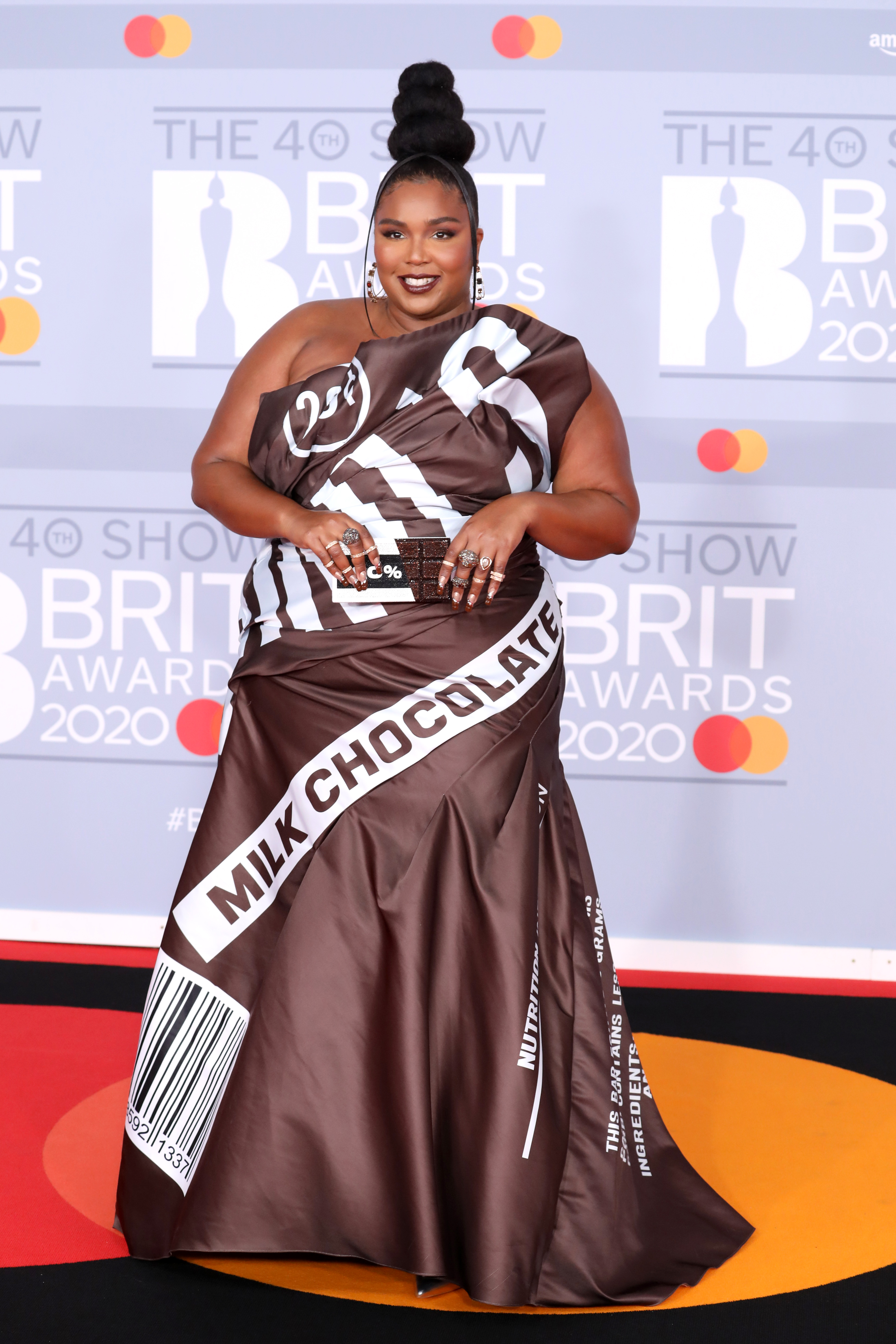 H Lizzo με custom φόρεμα του οίκου Moschino σε coffe color.