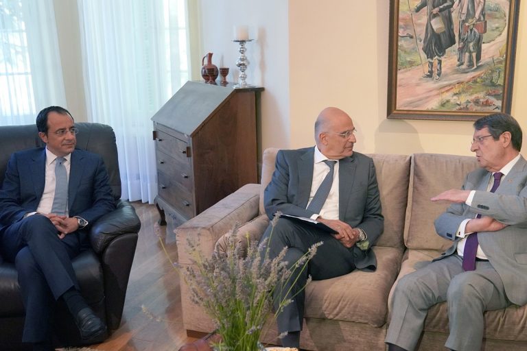 Ο κ. Αναστασιάδης τονίζει ότι με τον ΥΠΕΞ της Ελλάδος Ν. Δένδια είχε μια άκρως παραγωγική συνάντηση, συζητώντας την κοινή γραμμή Κύπρου και Ελλάδας για αντιμετώπιση των τουρκικών προκλήσεων και την αποκλιμάκωση της έντασης στην περιοχή.