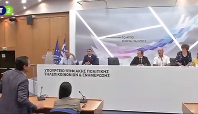 Διακαναλική… κόντρα συμμάχων διεξήχθη σήμερα στο Υπουργείο Ψηφιακής Πολιτικής Τηλεπικοινωνιών και Ενημέρωσης μπροστά στην κάμερα της ΕΡΤ.