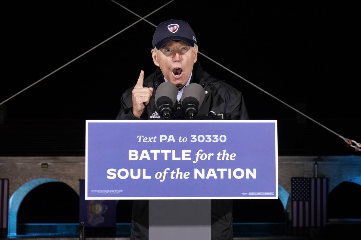 Στιγμιότυπο από προεκλογική ομιλία του Μπάιντεν στη Φιλαδέλφια.AP Photo/Andrew Harnik