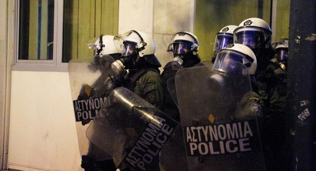 Ομάδα αντιεξουσιαστών εμφανίστηκε ξαφνικά και πέταξε περισσότερες από 20 βόμβες μολότοφ, προκαλώντας φθορές στην κλούβα της διμοιρίας ΥΜΕΤ, σε ένα όχημα και μια μηχανή.