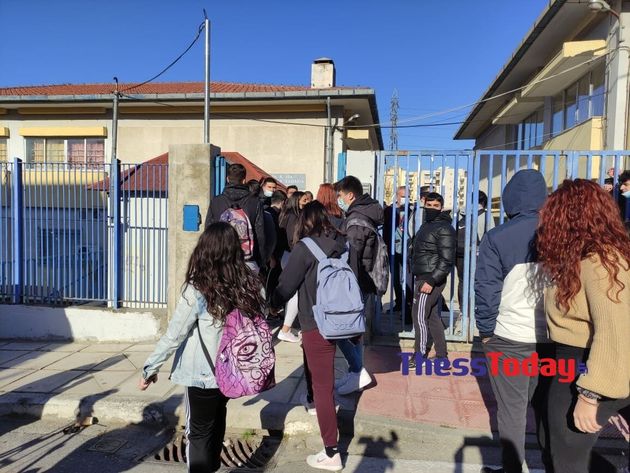 Σύμφωνα με ρεπορτάζ του thesstoday.gr άγνωστοι τοποθέτησαν αλυσίδες και λουκέτα στις εισόδους και δεν επέτρεπαν σε καθηγητές και μαθητές να μπουν μέσα, ενώ διαμαρτύρονταν για τα υποχρεωτικά self test στις σχολικές μονάδες, λέγοντας ότι είναι αντισυνταγματικό το να υποχρεώνεις κάποιον να προβεί σε οποιαδήποτε ιατρική πράξη.
