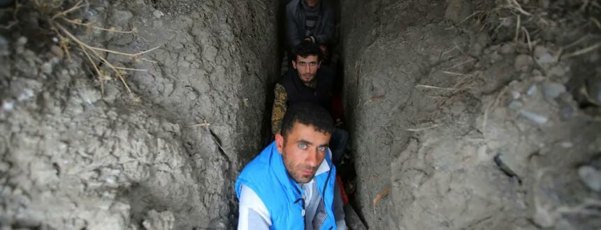 Φωτογραφίες από την πόλη του Τέρτερ του Αζερμπαϊτζάν απεικονίζουν ανθρώπους να αναζητούν καταφύγιο σε λαγούμια και κατεστραμμένα σπίτια, που σύμφωνα με αναφορές δέχθηκαν πλήγματα από αρμένικα πυρά.