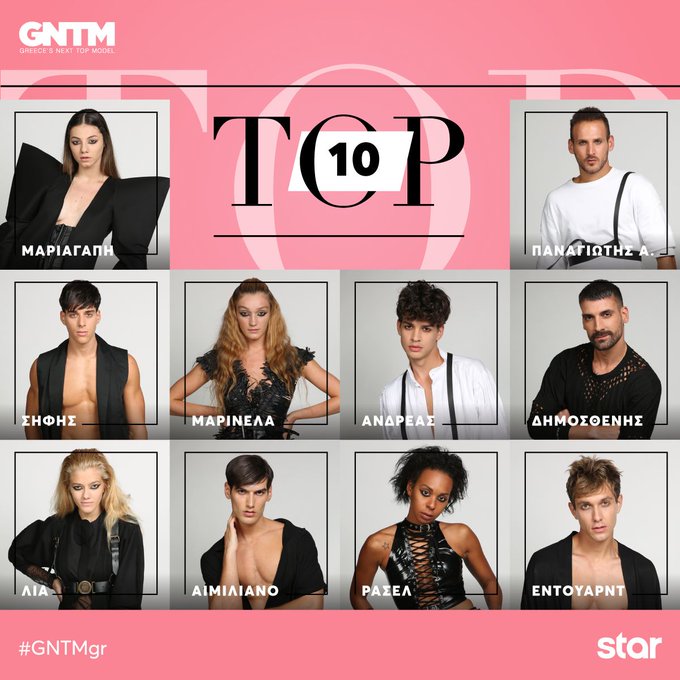 Η χρυσή δεκάδα του φετινού GNTM απαρτίζουν πλέον η Ρασέλ, η Μαριαγάπη, η Μαριλένα, η Λία, ο Δημοσθένης, ο Αντρέας, ο Έντουαρντ, ο Αιμιλιάνο, ο Σήφης και ο Παναγιώτης.