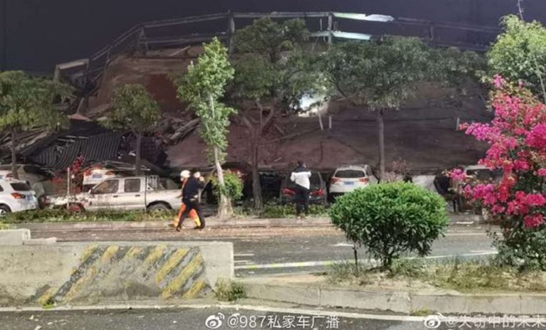 Το ξενοδοχείο Xinjia κατέρρευσε, σύμφωνα με το Mnw.cn. Βίντεο από το σημείο δείχνουν διασώστες να ψάχνουν για σημάδια ζωής ανάμεσα στα συντρίμμια.