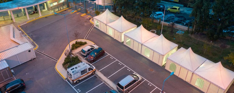 Σκηνές στήθηκαν και στους εξωτερικούς χώρους του Ιπποκράτειου Νοσοκομείου Θεσσαλονίκης, μετά το ΑΧΕΠΑ, σε μια προσπάθεια ενίσχυσης των υποδομών και κάλυψης των αυξημένων αναγκών που δημιουργούνται λόγω της πανδημίας.