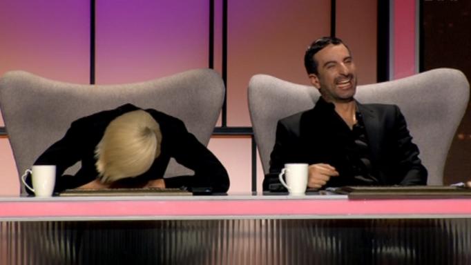 “Πως είπαμε ότι θα λανσάρουμε το είδος αυτό το οποίο εσύ σχεδιάζεις;” ρώτησε ο Λάκης Γαβαλάς την Janna Sireac. “Είπαμε ότι θα βάζουμε την πυτζάμα από κάτω και από πάνω θα βάλουμε ένα έξτρα ρούχο. Possibly γυαλιστερό. Έτσι σου είχα πει πως θα τα βάλεις;”.