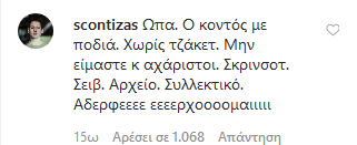 “Ώπα. Ο κοντός με ποδιά. Χωρίς τζάκετ. Μην είμαστε και αχάριστοι. Σκρίνσοτ. Σέιβ. Αρχειο. Συλλεκτικό. Αδερφέ έρχομαι” του έγραψε.