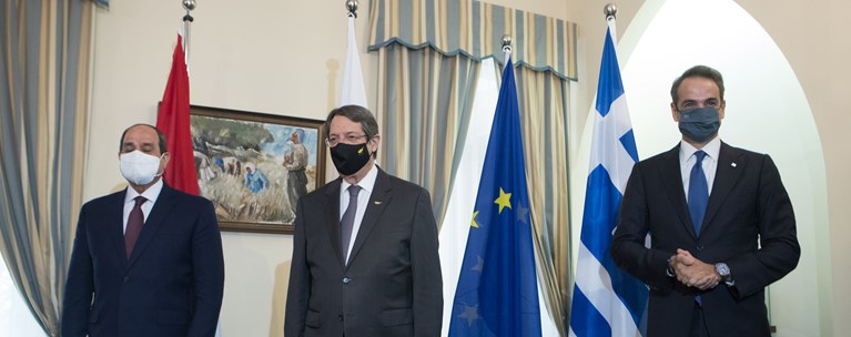 Νωρίτερα, η κοινή διαπίστωση ότι η υπογραφή και κύρωση της ιστορικής συμφωνίας για την οριοθέτηση της ΑΟΖ Ελλάδας – Αιγύπτου παρουσιάζει πολλαπλά οφέλη αλλά και η σύμπτωση απόψεων για την αυξανόμενη επιθετική συμπεριφορά της Τουρκίας βρέθηκαν στο επίκεντρο της 8ης Συνόδου Κύπρου-Ελλάδας-Αιγύπτου.