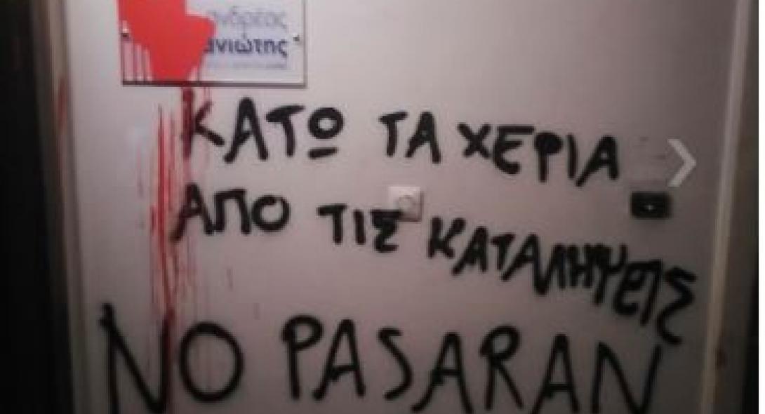 «Πραγματοποιήσαμε παρέμβαση με μπογιές και σπρέι στα γραφεία του βουλευτή της ΝΔ Κατσανιώτη. Είναι διακυρηγμένη η πρόθεση της κυβέρνησης για σαρωτική επίθεση απέναντι σε όσους αγωνίζονται. Απέναντι στην κρατική καταστολή η κοινωνική αυτοοργάνωση,η ταξική αλληλεγγύη και η μαχητική αντίσταση. NO PASARAN