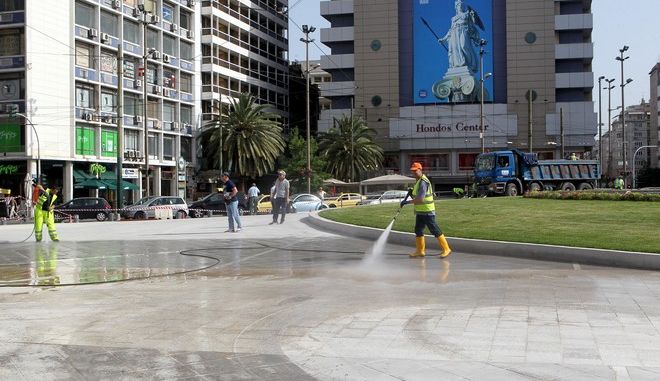 Ήδη από το πρωί, τα προστατευτικά έχουν απομακρυνθεί από το μεγαλύτερο μέρος της πλατείας και συνεργεία του δήμου προβαίνουν στον καθαρισμό της. Το βράδυ, σύμφωνα με πληροφορίες, θα λειτουργήσει -φωταγωγημένο- και το συντριβάνι.
