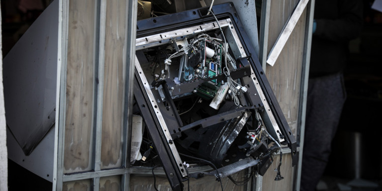 Η έκρηξη στο τρίτο ΑΤΜ, που βρισκόταν στο 40ο χλμ. της εθνικής οδού Αθηνών-Κορίνθου, στο ύψος των Μεγάρων, σε κιόσκι, σημειώθηκε στις 4:20.