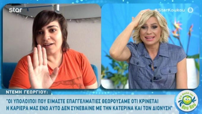 Όσο για το γεγονός ότι τόνιζε διαρκώς ότι η Κατερίνα είναι κομμώτρια, η Ντέμη Γεωργίου είπε: “Θίχτηκε το μισό πανελλήνιο που την έλεγα κομμώτρια. Δεν θεωρώ ότι να λες κάποιος με το επάγγελμά του ότι είναι ρατσιστικό”.
