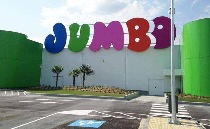 Την εξεταζόμενη περίοδο ο όμιλος Jumbo, -σ.σ. το 70% των προϊόντων που πουλά προέρχεται από την Κίνα-, λειτούργησε δύο νέα ιδιόκτητα υπέρ- καταστήματα στη Ρουμανία. Έτσι στο τέλος Δεκεμβρίου του 2018 διέθετε δίκτυο 77 καταστημάτων. Από αυτά 51 βρίσκονται στην Ελλάδα (σ.σ. η χώρα συνεισφέρει το 61,13% του τζίρου από 63,96%), 5 στην Κύπρο (πραγματοποιείται το 10,59% του τζίρου), 9 στη Βουλγαρία (συμμετέχει με 11,26% στις πωλήσεις), 12 στη Ρουμανία, -εκεί πραγματοποιείται το 17,02% των πωλήσεων από 13,76% που ήταν ένα χρόνο πριν-, και το ηλεκτρονικό κατάστημα www.e-jumbo.gr. Επίσης μέσω συνεργασιών, έχει παρουσία με 22 καταστήματα που φέρουν το σήμα της Jumbo, στη Βόρεια Μακεδονία, στην Αλβανία, στο Κόσσοβο, στη Σερβία και στη Βοσνία.