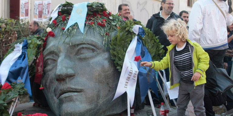 Η κεφαλή, ωστόσο, έχει μια διαφορετική ιστορία από εκείνη της εξέγερσης του Πολυτεχνείου το 1973. Πρόκειται για ένα έργο του γλύπτη Μέμου Μακρή, ενός αγωνιστή της Εθνικής Αντίστασης κατά τη γερμανική κατοχή, από τον οποίο αφαιρέθηκε η ελληνική υπηκοότητα το 1964.