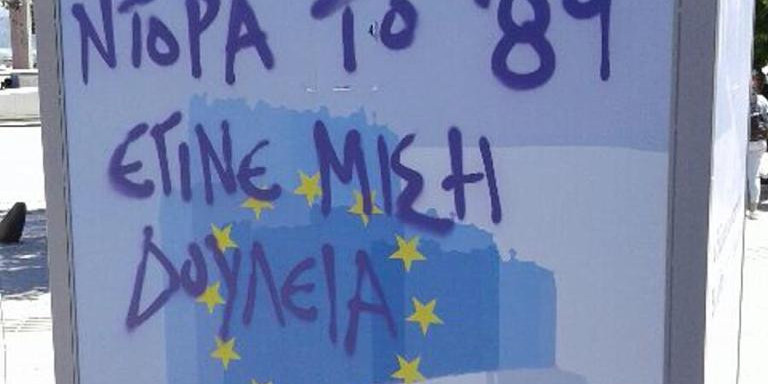 Τελευταίο κρούσμα τα τρικάκια που πέταξαν και τα συνθήματα που έγραψαν στο χώρο που προετοιμαζόταν εκδήλωση της υποψηφίας δημάρχου Θεσσαλονίκης Κατερίνας Νοτοπούλου, σήμερα το πρωί.