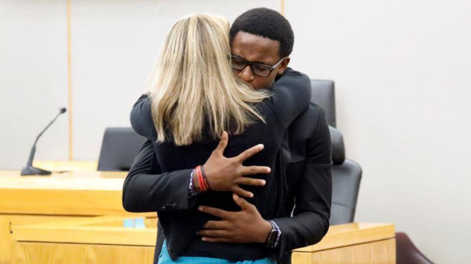 Στο άκουσμα της ποινής, η πρώην αστυνομικός ξέσπασε σε λυγμούς. Αυτό που θα ακολουθούσε, όμως, δεν μπορούσε να το είχε φανταστεί. Ο αδερφός του θύματος, Brandt Jean, σηκώθηκε όρθιος και περπάτησε προς το μέρος της γυναίκας, αιφνιδιάζοντας τους πάντες. Κανείς δεν πρόλαβε να αντιδράσει. Όμως ο σκοπός του δεν ήταν εκείνος που θα περίμενε κανείς.