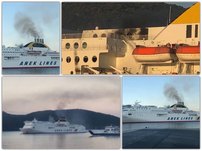 Πρόκειται για το Olympic Champion της ANEK LINES, το οποίο το πρωί του Σαββάτου εξαιτίας της μεγάλης φωτιάς στο γκαράζ επέστρεψε και έδεσε στο λιμάνι της Ηγουμενίτσας.