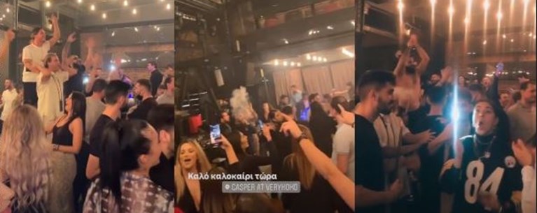 Συγκεκριμένα, όπως φαίνεται σε εικόνες και βίντεο που αναρτήθηκαν από θαμώνες του μαγαζιού στα μέσα κοινωνικής δικτύωσης, ένα ξέφρενο γλέντι είχε στηθεί ως… αποχαιρετιστήριο πριν από το lockdown, φυσικά χωρίς να τηρείται κανένα μέτρο προστασίας από τον κορονοϊό.