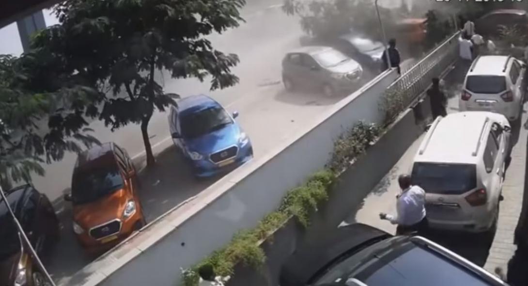 Στιγμές αγωνίας καταγράφηκαν σε βίντεο μετά την πτώση ενός αυτοκινήτου από γέφυρα σε δρόμο γεμάτο πεζούς και αυτοκίνητα.