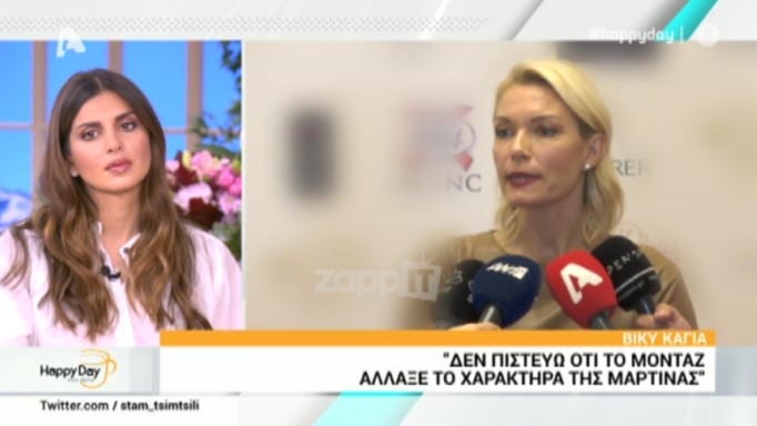 «Η Μαρτίνα είναι εξαιρετικό κορίτσι, πάρα πολύ όμορφή και έχει πάρα πολύ χιούμορ. Δεν πιστεύω ότι το μοντάζ της άλλαξε τον χαρακτήρα. Απλά πολλές φορές μεταξύ τους, αυτές που δεν έχουν εμπειρία με την τηλεόραση, μιλάνε μεταξύ τους σαν φίλες, ενώ γράφει μια κάμερα. Δε φταίει κανείς για αυτό, είναι η απειρία. Γιατί να γίνει μοντάζ σε κάποια και μια άλλη όχι; Πρέπει πάντα να έχουμε στο μυαλό μας ότι το βλέπει κι άλλος και πρέπει να το φιλτράρουμε. Είναι αστεία αυτά τα πράγματα, υπάρχει catering για όλους. Υπάρχει ψυχολόγος και ψυχίατρος στο GNTM και σε κάθε γύρισμα είναι εκεί», τόνισε η Βίκυ Καγιά.