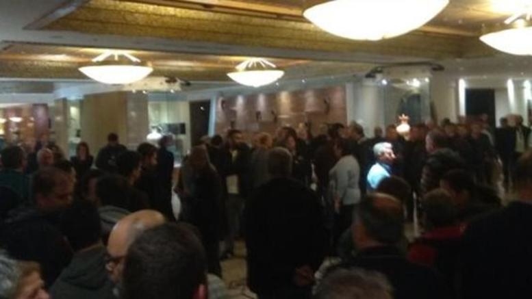 O χώρος του ξενοδοχείου «Ρόδος Πάλας» παραμένει υπό κατάληψη. Με δηλώσεις του στο ΑΠΕ-ΜΠΕ ο πρόεδρος του Εργατικού Κέντρου Ρόδου Σάββας Χατζησάββας εξέφρασε την έντονη ανησυχία του κάνοντας λόγο για πρωτόγνωρα γεγονότα και συμπεριφορές, ενώ εξέφρασε την έντονη δυσαρέσκειά του για την απουσία της αστυνομίας. Όπως ανέφερε ο κ. Χατζησάββας, οι «εισβολείς» -που πρόκειται για μέλη του ΠΑΜΕ- επιτέθηκαν στους συνέδρους που προσπάθησαν να τους εμποδίσουν να καταλάβουν την αίθουσα που θα διεξαγόταν το συνέδριο.